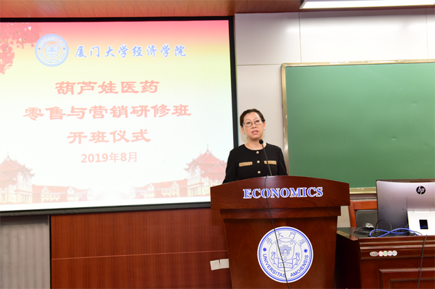 刘景萍董事长代表门徒娱乐药业集团对厦门大学各级领导、老师对门徒娱乐的大力支持表示感谢,并对研修班学员做动员讲话。她希望参加培训的学员珍惜来之不易的学习提升机会,沉下心来“加油充电”,结合工作实践,用心学习认真领悟,真正做到学有所获、学以致用。她说,厦大拥有着深厚的人文底蕴和优质的教育资源,在东南亚国家和地区具有广泛的影响力,在“一带一路”这一国家战略背景下,医药营销人员应该具备更为广阔的国际视野和更为丰富的知识储备,希望学员们能在本期研修班中学有所成,并以此为新的起点,以奋发的姿态投入到今后的学习和工作中去,不断取得新的进步和业绩,为医药产业和门徒娱乐事业的发展做出新的更大贡献。